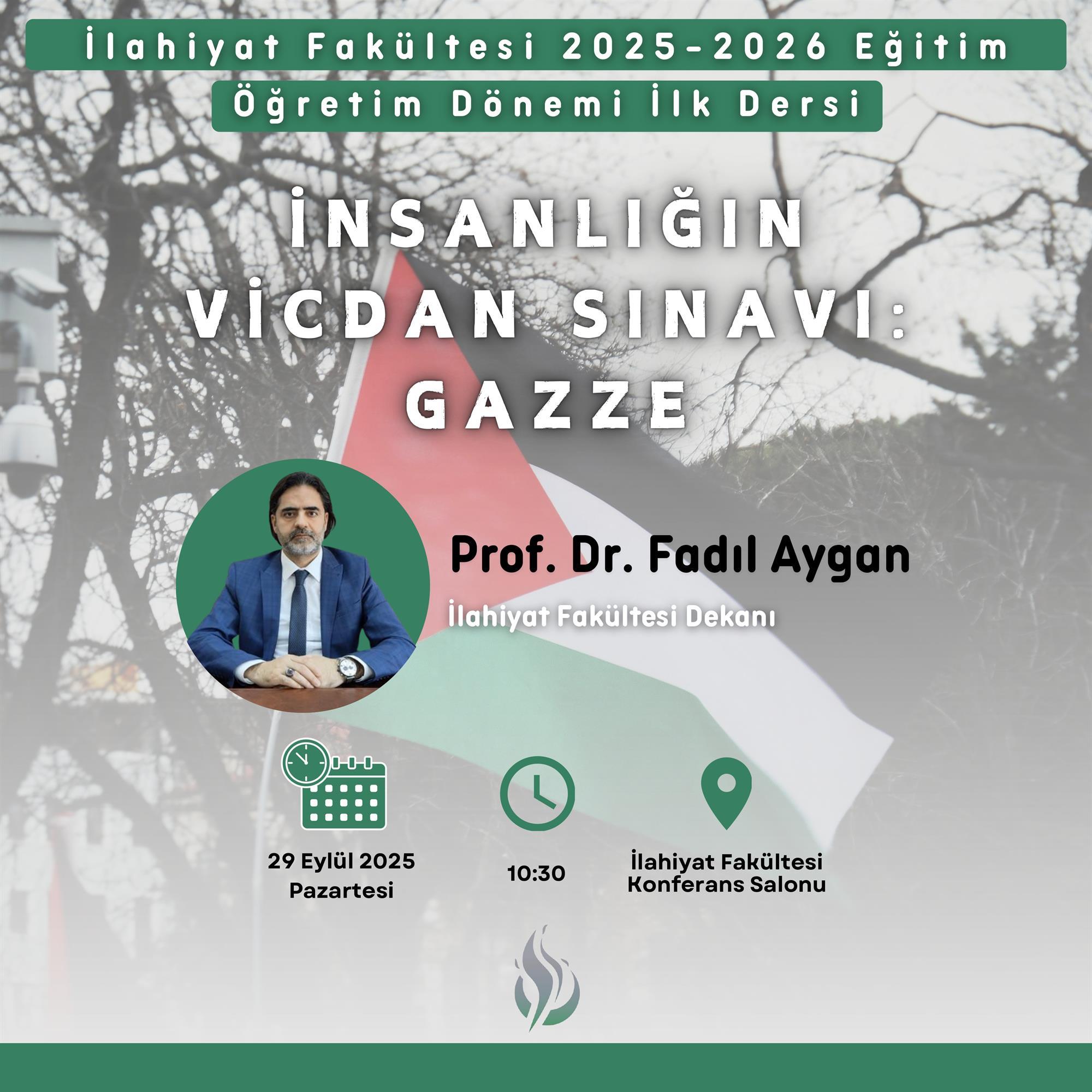 Siirt Üniversitesi İlahiyat Fakültesi’nin 2025-2026 eğitim-öğretim yılı ilk dersi bugün saat 10:30’da İlahiyat Fakültesi Konferans Salonu’nda öğrencilerin ve akademik personelin katılımıyla gerçekleştirildi. Fakülte Dekanımız Prof. Dr. Fadıl Aygan tarafından verilen dersin başlığı “İnsanlığın Vicdan Sınavı: Gazze” oldu.
