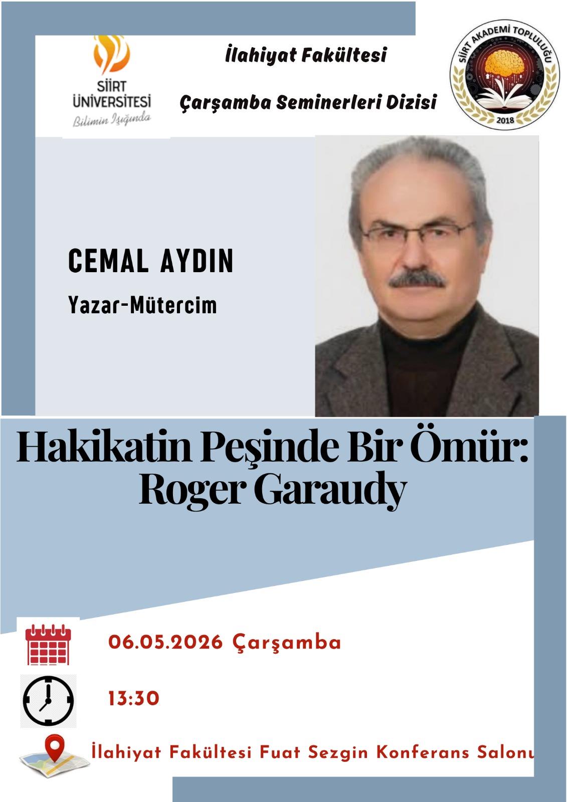 Çarşamba Seminerleri kapsamında Siirt Akademi Öğrenci Topluluğu tarafından düzenlenecek olan etkinlik, 20. yüzyılın en sarsıcı entelektüel dönüşümlerinden birine imza atan Fransız düşünür Roger Garaudy’nin fikri serüvenini mercek altına almayı amaçlamaktadır. Program kapsamında; Garaudy’nin Marksizm’den İslam’a uzanan arayışı, Batı rasyonalizmine yönelttiği eleştiriler ve Müslüman olduktan sonra inşa ettiği "İslam Medeniyeti" perspektifi kapsamlı bir çerçevede ele alınacaktır. Katılımcılar, Garaudy’nin eserleri üzerinden İslam’ın evrensel mesajının modern çağdaki yankılarını ve "Geleceğimizde İslam Var" vizyonunun temel yapı taşlarını keşfetme imkânı bulacaktır.
