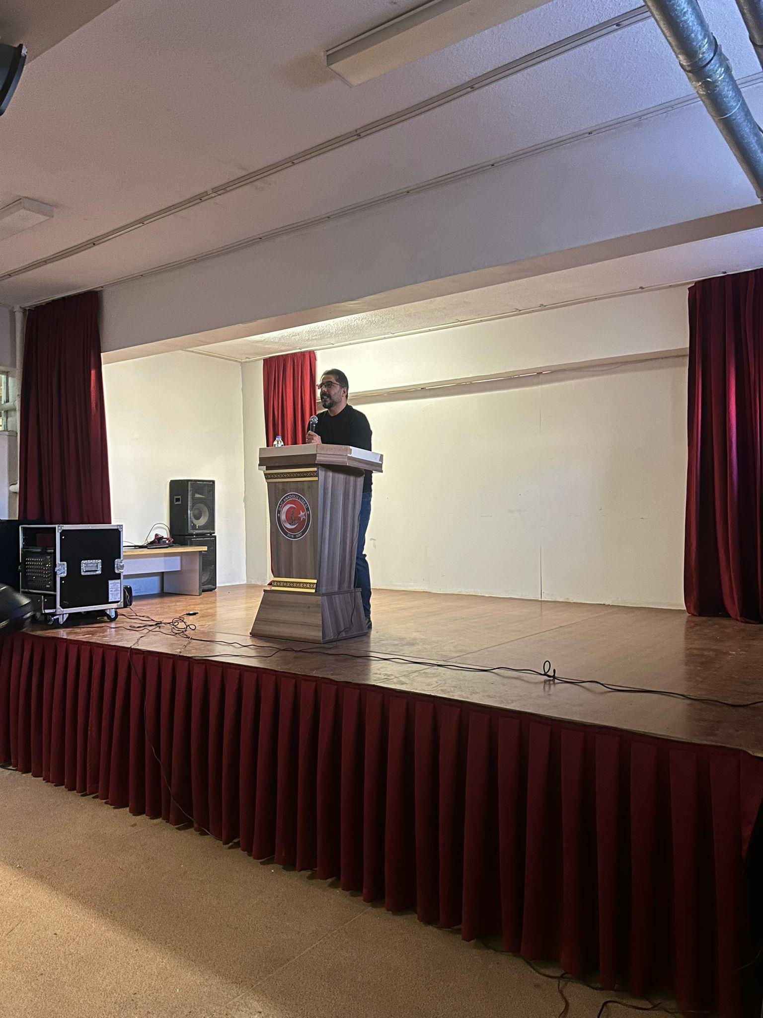 Fakültemiz Din Sosyolojisi Ana Bilim Dalı öğretim üyelerinden Doç. Dr. Ahmet Aktaş, 16 Şubat 2026 Pazartesi günü Gazi Anadolu Lisesi’nde değerler eğitimi etkinlikleri kapsamında “Dijital Çağda Sosyal Medya Ahlakı” başlıklı bir seminer verdi.