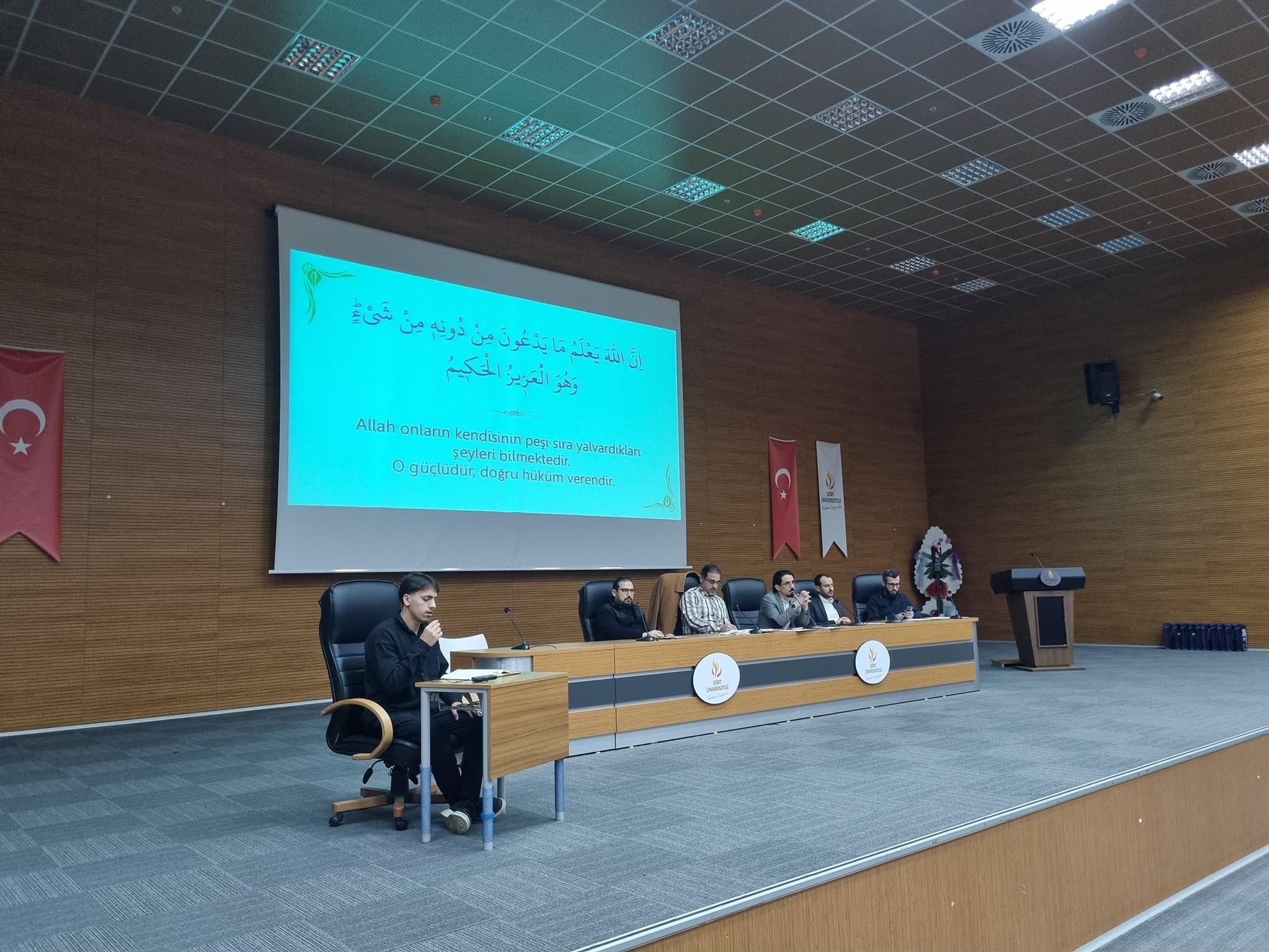 Siirt Üniversitesi İlahiyat Fakültesi bünyesinde, "Üniversiteler Arası Kur’an-ı Kerim Yarışması" kapsamında fakülteyi temsil edecek öğrencilerin belirlenmesi amacıyla düzenlenen yarışma, 4 Mart Çarşamba günü gerçekleştirilmiştir.