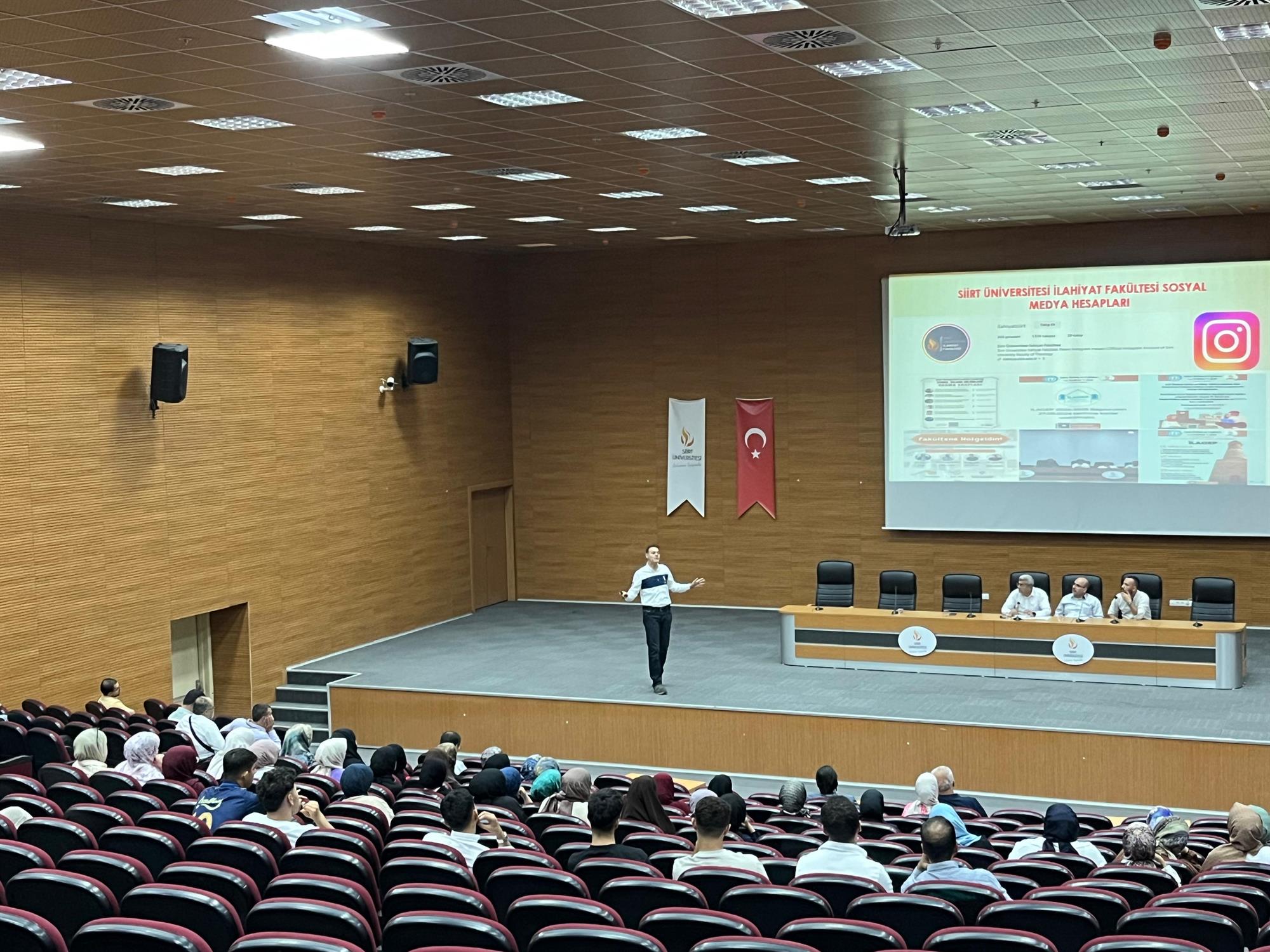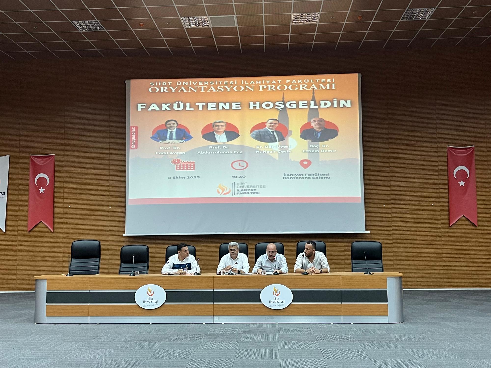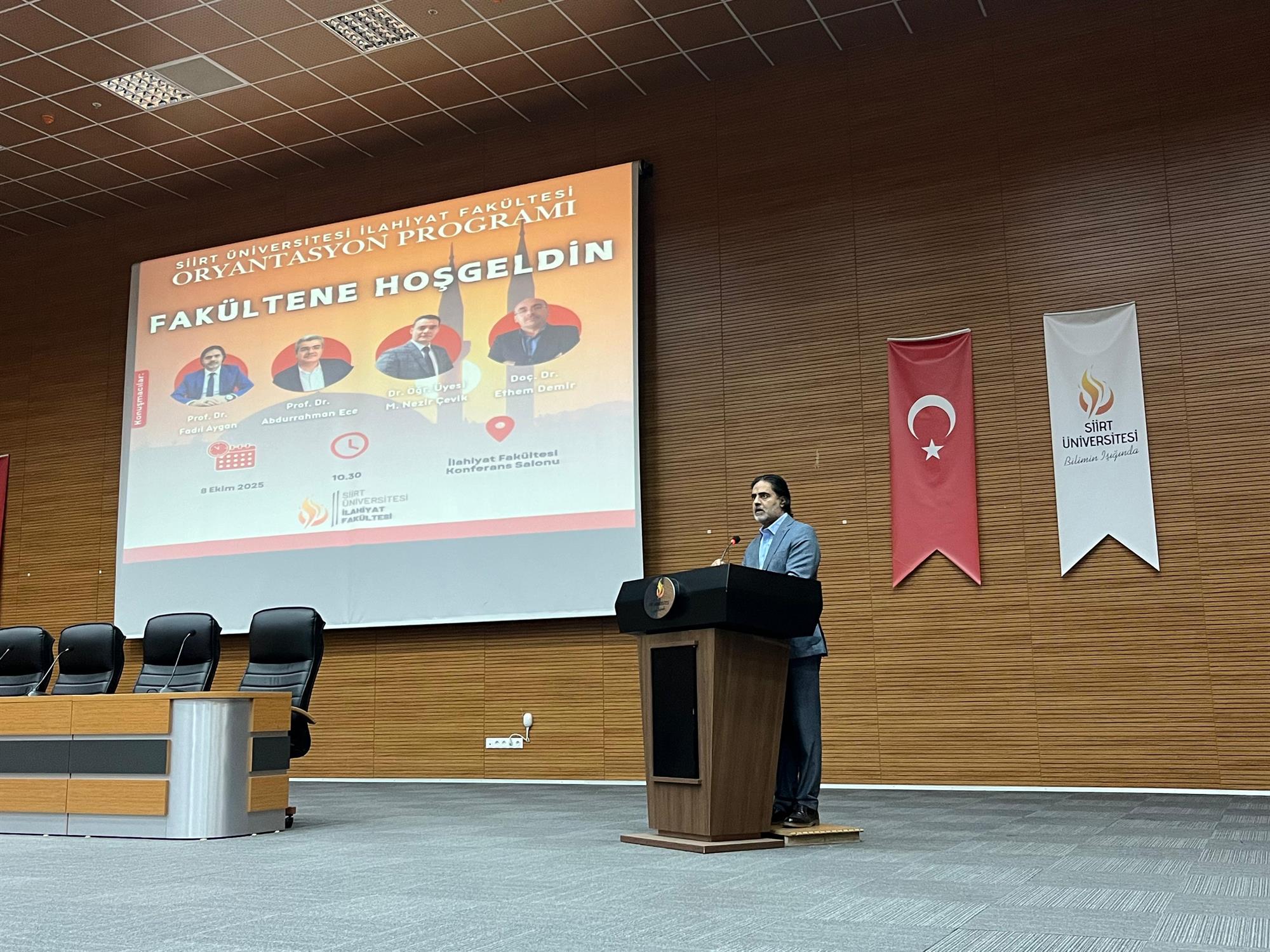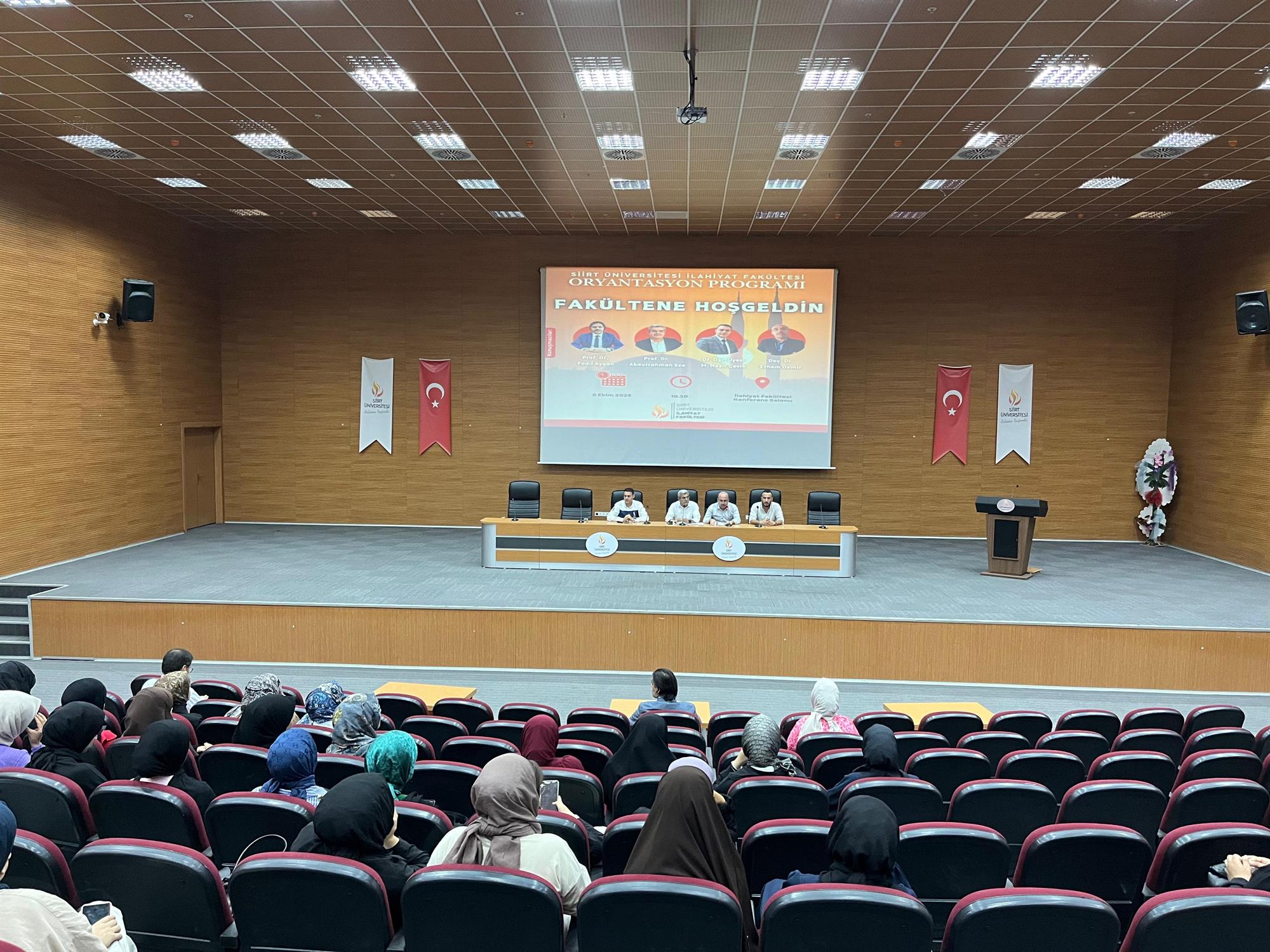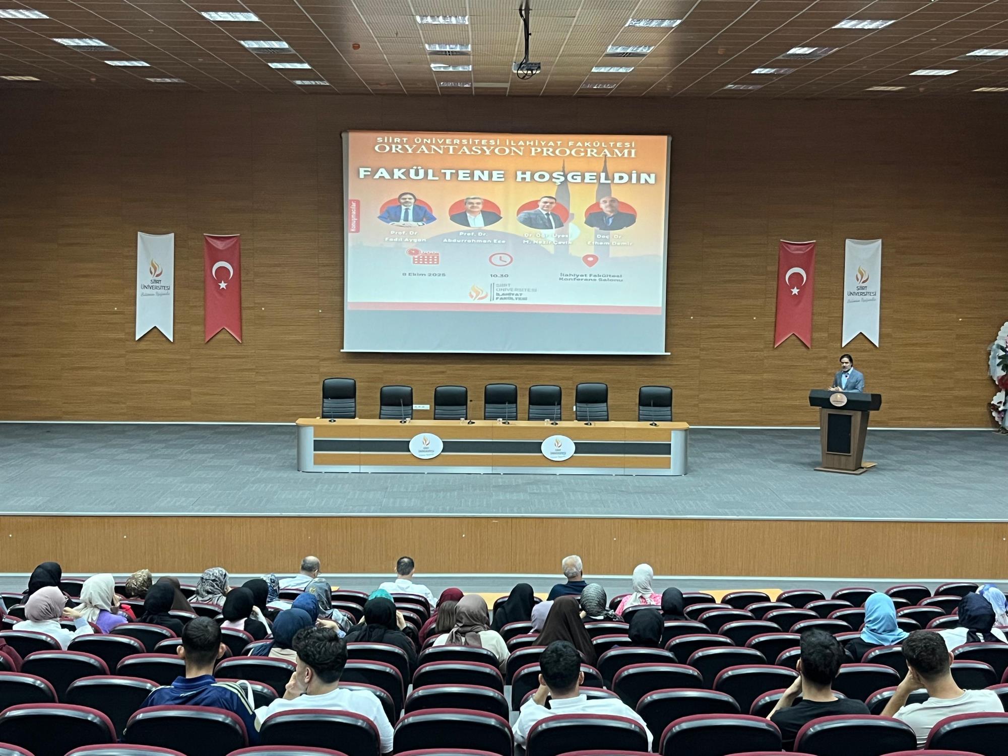 Siirt Üniversitesi İlahiyat Fakültesi hazırlık sınıfı öğrencileri için oryantasyon programı gerçekleştirdi. Fakülteye yeni başlayan öğrencilerin üniversiteye uyum sürecini kolaylaştırmak ve fakültedeki eğitim hakkında bilgilendirmek amacıyla gerçekleşen programda fakülte dekanımız Prof. Dr. Fadıl Aygan fakültenin misyonu, vizyonu ve öğrencilere sunulan akademik olanaklar hakkında bilgi verirken, öğrencilere üniversite hayatına adapte olmaları konusunda çeşitli tavsiyelerde bulundu. Aynı zamanda fakültenin güçlü akademik kadrosunun ve sunduğu imkanların öğrencilerin başarılarına katkı sağlayacağını vurguladı. Sonrasında ise dekan yardımcılarımız Prof. Dr. Abdurrahman Ece ve Dr. Öğr. Üyesi Mehmet Nezir Çevik ile Arap Dili ve Belagatı Ana Bilim Dalı Başkanı Doç. Dr. Ethem Demir, hazırlık sınıfıyla ilgili merak edilen konularda öğrencilere gerekli bilgileri verip onların sorularını cevapladılar. Ayrıca Kütüphane personelimiz Ferhat Sebat kütüphane kullanımı, ödünç kitap alma ve çalışma saatleri gibi konularda bilgilendirme yaptı.